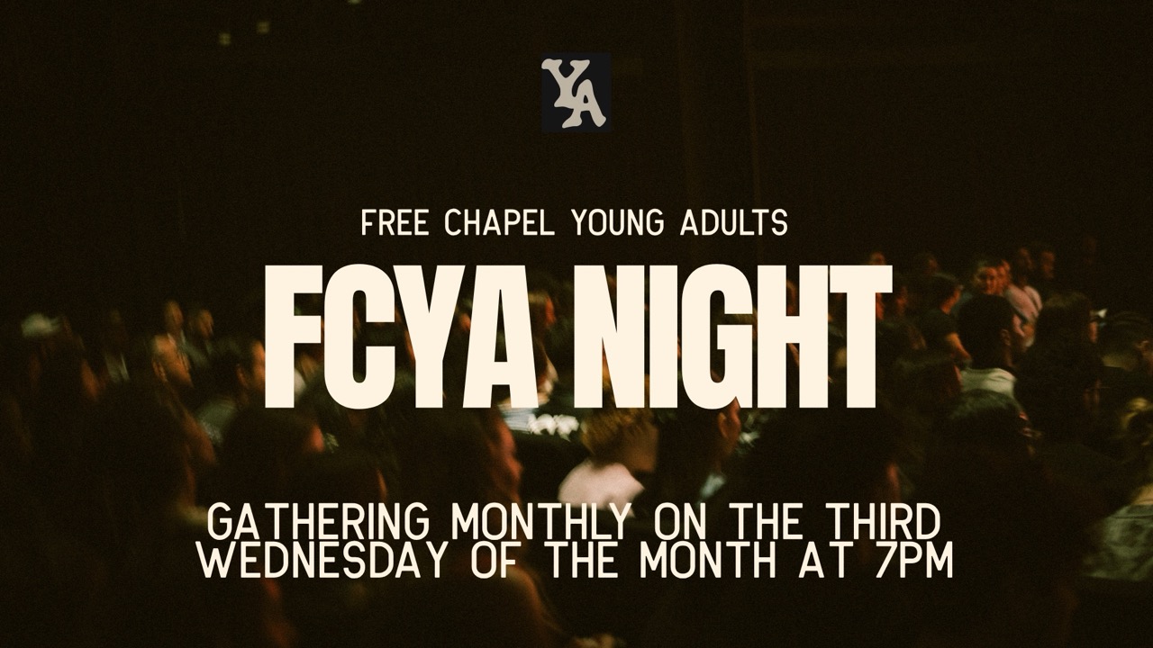 Young Adults (18–30s), you’re invited to join us for our monthly gathering called "FCYA Night" that happens on the third Wednesday of each month at 7pm!